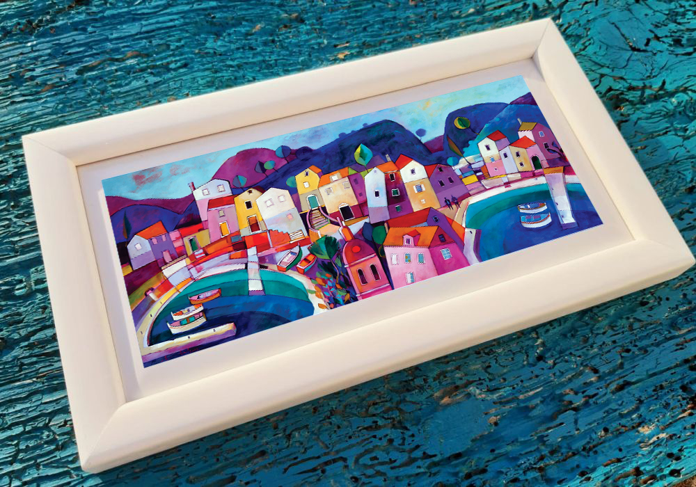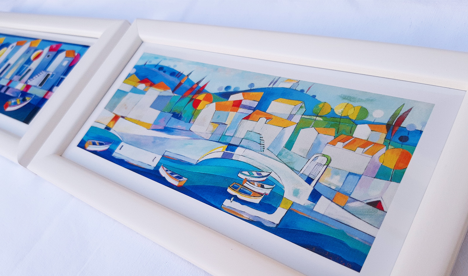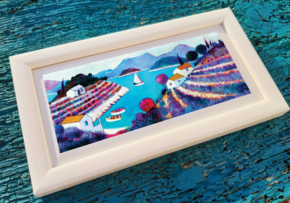 1201 - Oslikana keramika panorama 22 cm x 12 cm sa drvenim okvirom - bijela boja. Natpis mjesta po želji.