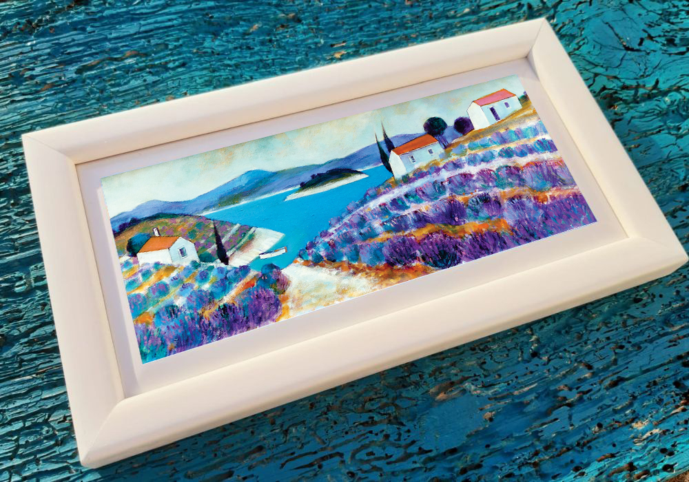 1207 - Oslikana keramika panorama 12 cm x 22 cm sa drvenim okvirom - bijela boja. Natpis mjesta po želji.