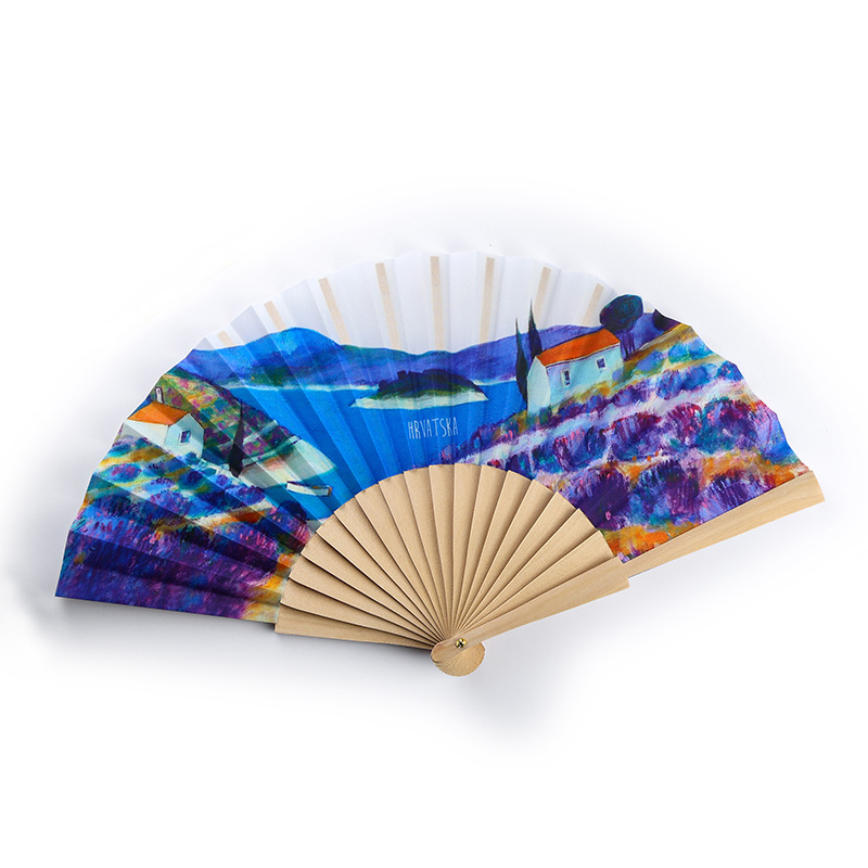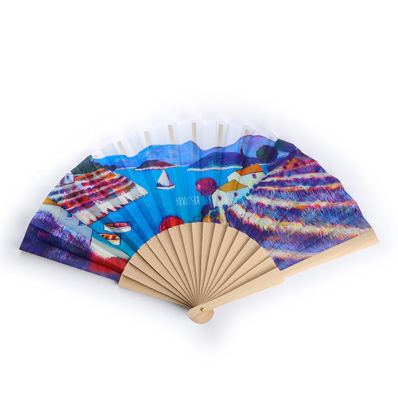 Lepeza dimenzija 40 x 23 cm. Natpis na lepezi "Hrvatska". Matrijal: drvo i tkanina. Pakiranje: PVC vrećica