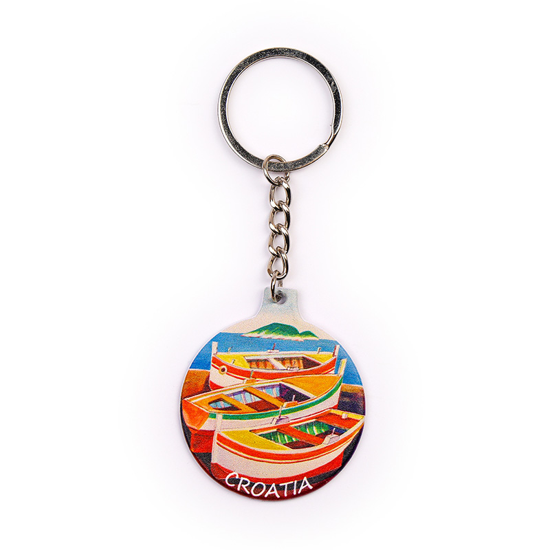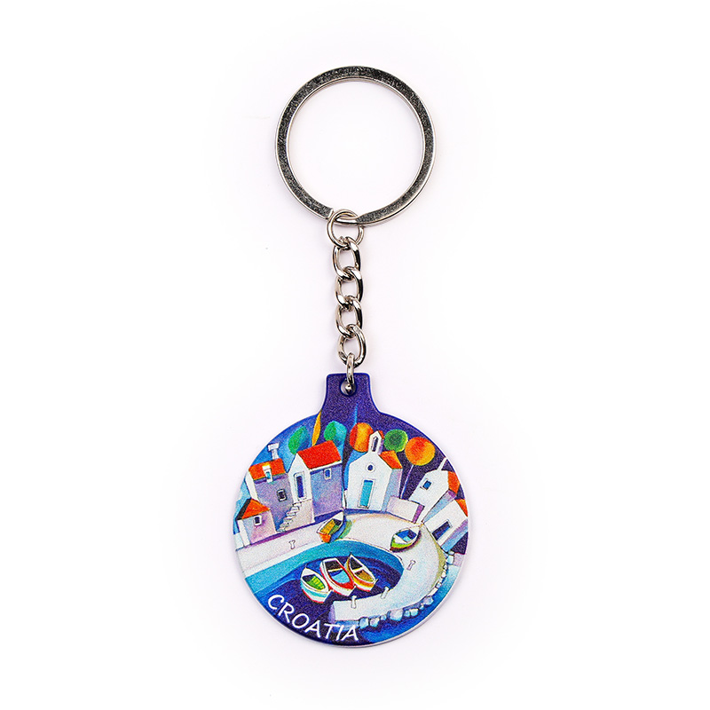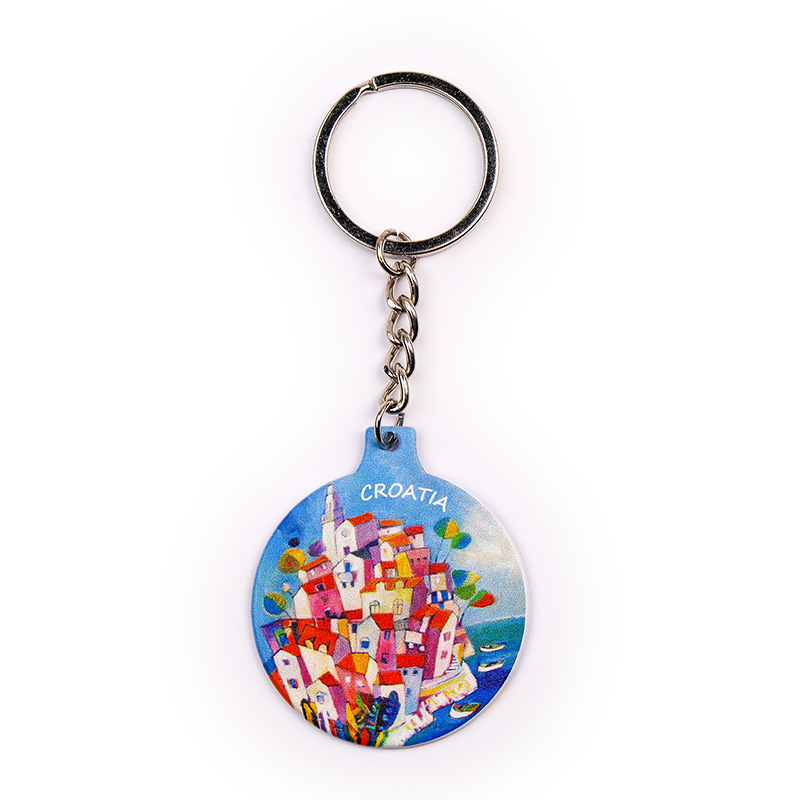 Obostrano oslikan privjesak dimenzija fi 5 cm Natpis na privjesku „Croatia“. Pakiranje: pojedinačno u PVC vrećici.