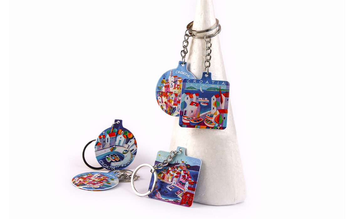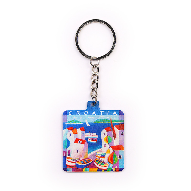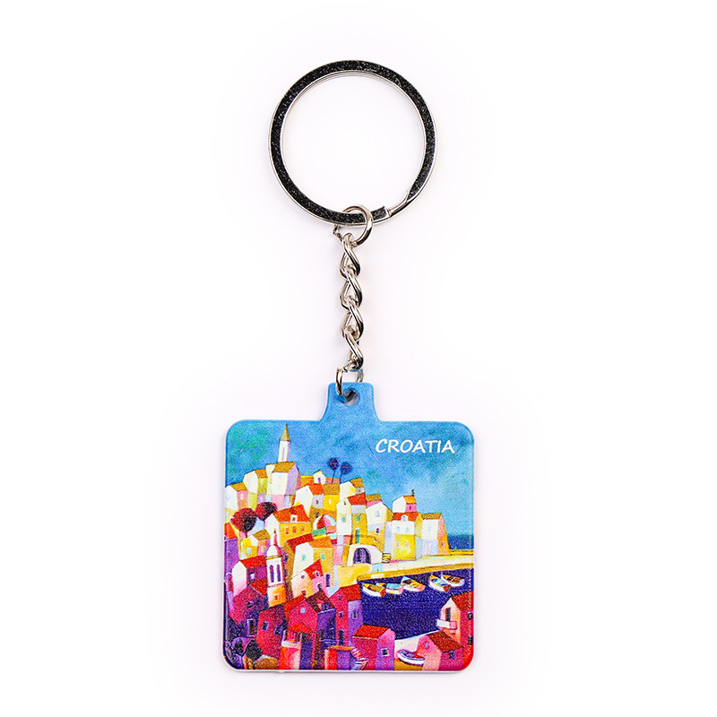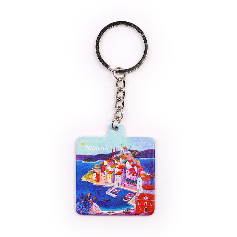 Obostrano oslikan privjesak dimenzija 4,7 cm x 4,7 cm. Natpis na privjesku „Croatia“. Pakiranje: pojedinačno u PVC vrećici.