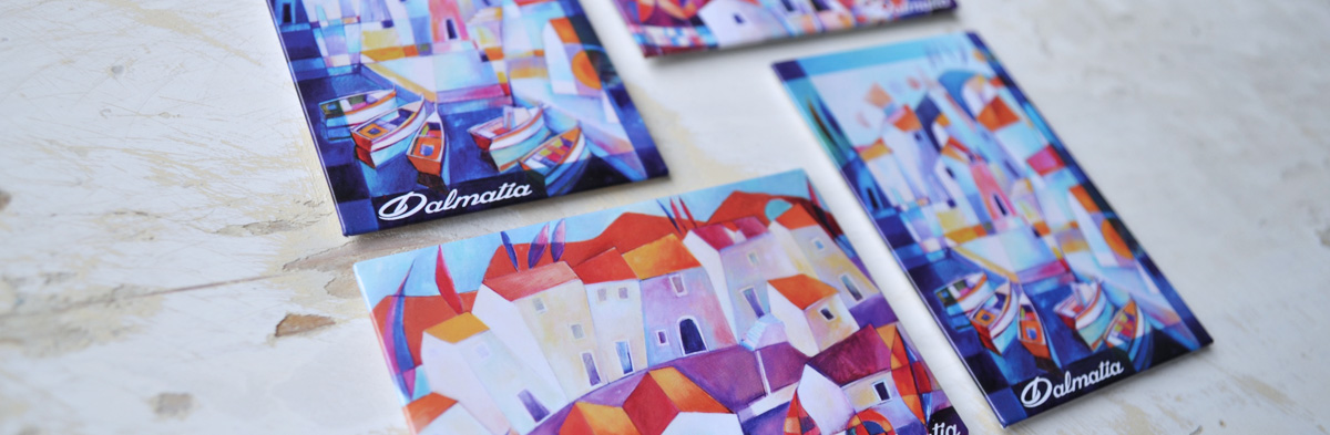 Naši suveniri prikazuju tipične priobalne motive; kuće, barke, uvale, plaže, ribarska mjesta...
